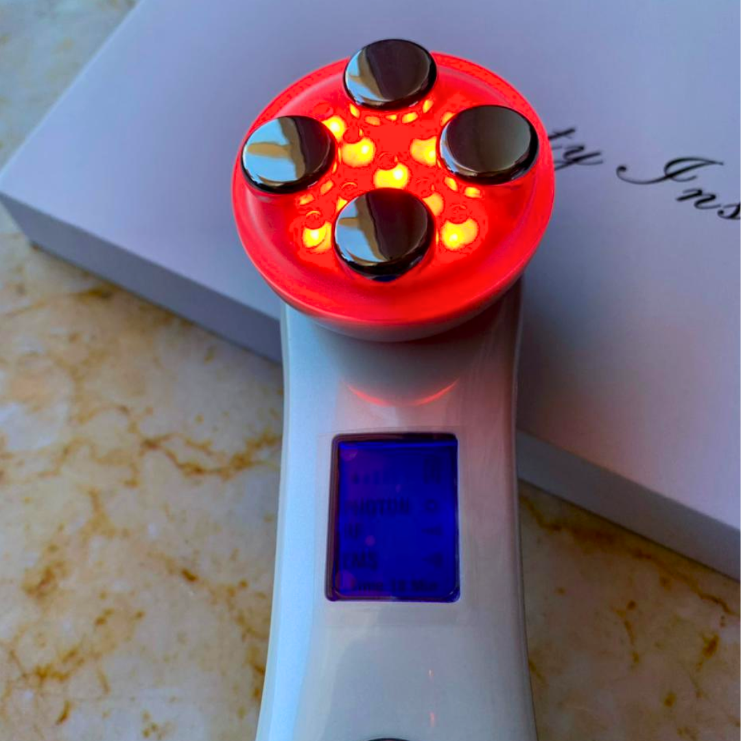 El Electroporador con Fototerapia y Radiofrecuencia EMS-RF combina tres tecnologías profesionales para un cuidado facial integral. Su diseño portátil y ergonómico permite usarlo en gabinete o en casa.
