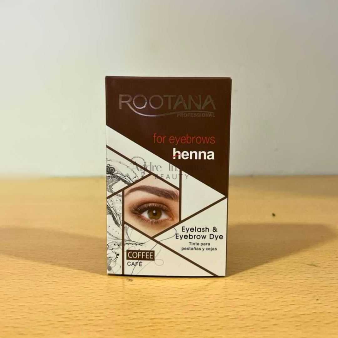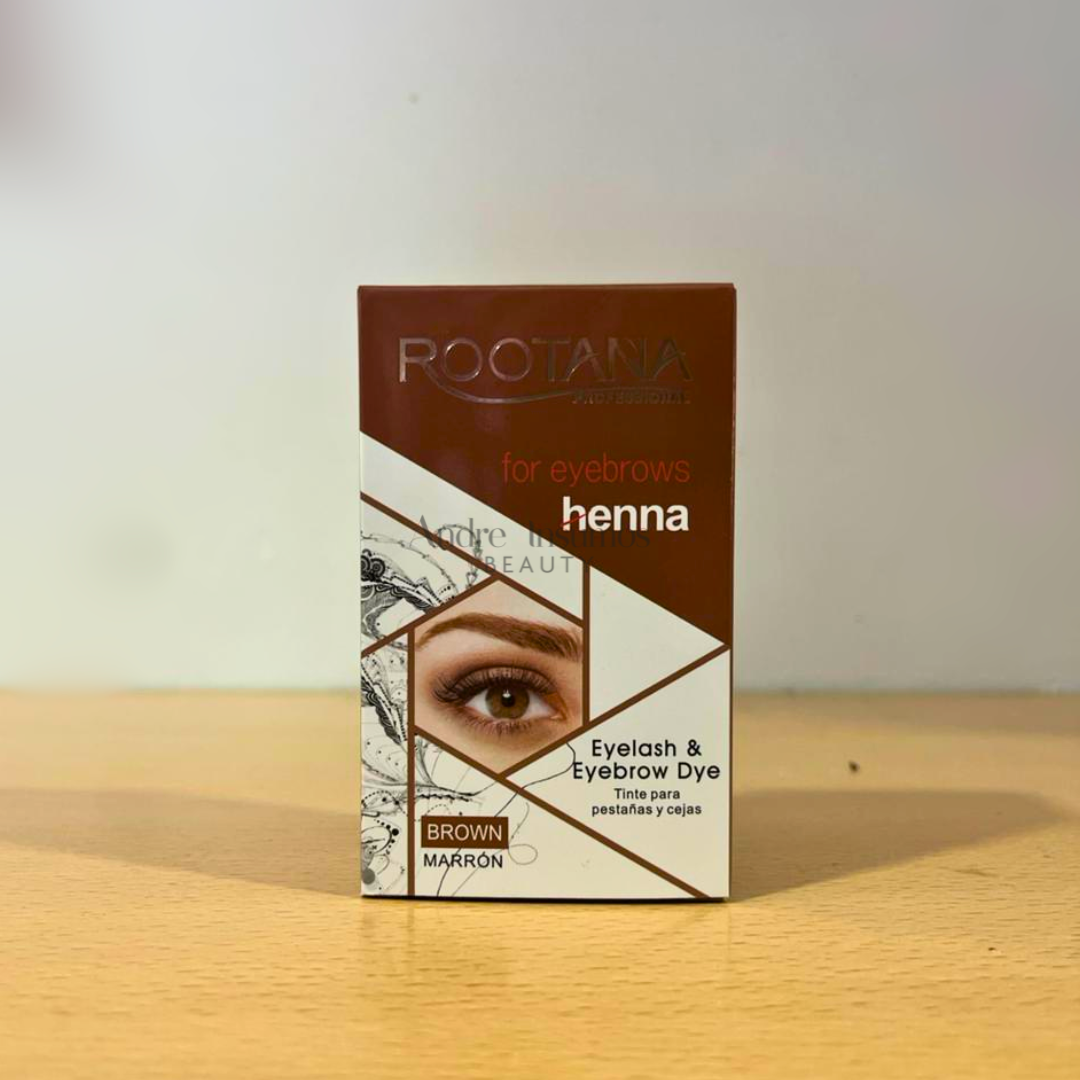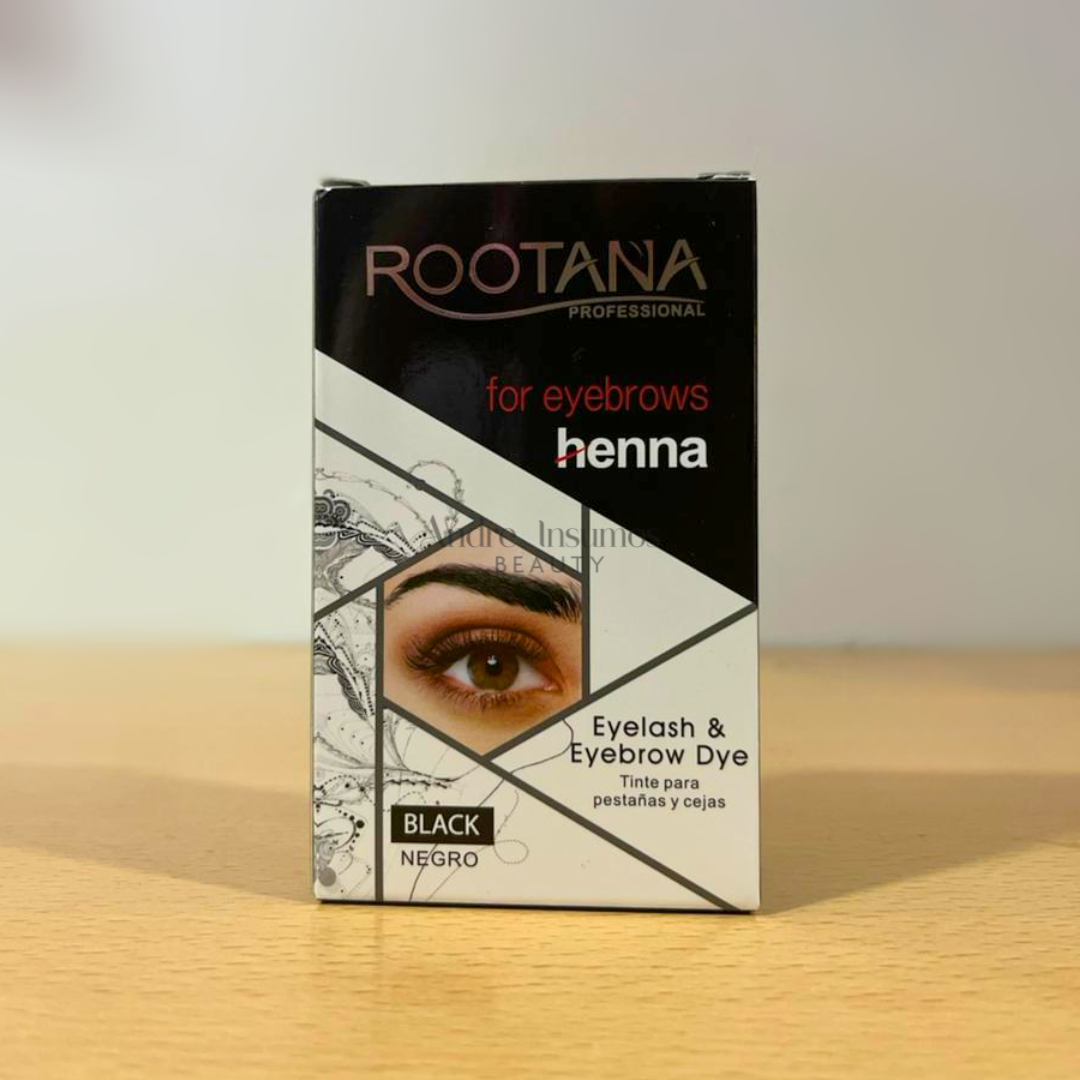 Kit de henna Rootana para perfilado y tinte de cejas. Incluye tinte, activador y accesorios. Resultado natural, cobertura duradera y tonos intensos.